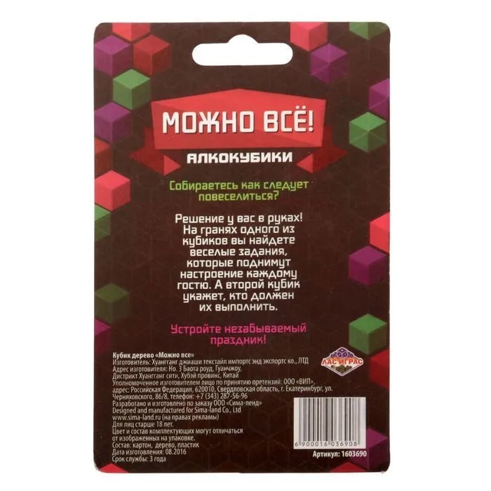 Купить кубик "можно все", алкокубики для принятия решений от 60 руб. с доставкой до пункта выдачи в Комсомольске. Интернет магазин ДекаМаркет. Оплата при получении.